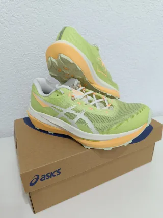 Zapatillas ASICS FUJISPEED 4. Zapatillas de trail de la marca ASICS, ligeras y muy reactivas. Zapatilla "TOP" para meter por todo tipo de senderos, apta para competición tanto por su ligereza como por su compuesto de competición (FFBlast+) acompañado de una placa propulsora. Sin duda, una voladora y muy ágil. A estrenar!!! Error en la talla a la hora de comprarla. Talla 39.