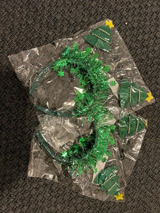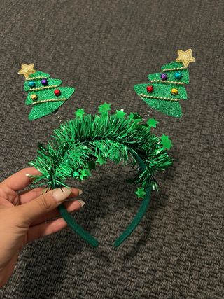Conjunto de 2 diademas festivas con temática de árboles de Navidad y Tul verde de niña talla única. Todo NUEVO!