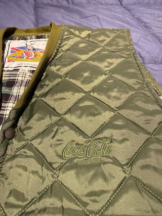 Chaleco acolchado estilo retro con el logo de Coca Cola. - Color verde. - Diseño acolchado. - Cierre de botones. escucho ofertas o cambio por algo que me interese