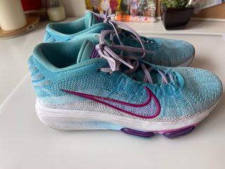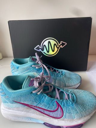 Zapatillas de baloncesto Nike G.T. Hustle 3 PB. - Diseño en tonos azules y morados. - Parte superior de tejido técnico. - Suela con amortiguación visible. -Suela en perfecto estado -Caja original incluida -Pequeños roces en los laterales