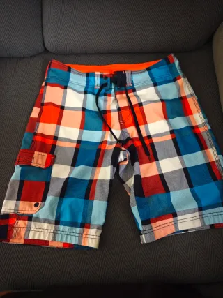 Bañador con un llamativo estampado de cuadros. - Cintura con cordón ajustable. - Bolsillo lateral con botón. - Forro interior.