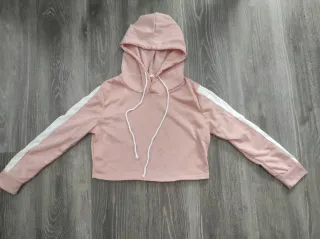 Sudadera corta con un diseño moderno y cómodo. - Diseño cropped. - Rayas blancas en las mangas. - Capucha con cordones.