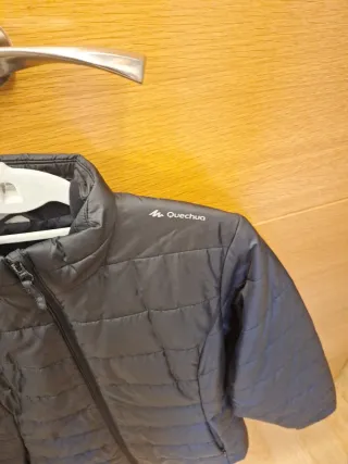 Chaqueta acolchada de la marca Quechua, en color gris. Perfecta para el día a día. - Cierre de cremallera frontal. - Cuello redondo. - Bolsillos laterales con cremallera.