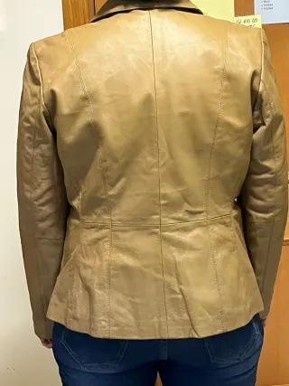 Chaqueta de piel en tono camel, ideal , con un corte muy favorecedor tipo blazer. Tiene muchísimo estilo y todavía da juego, pero está usada y presenta manchas y desgastes, tal como se ve en las fotos. No engaño: no está perfecta, pero tiene personalidad y queda muy bien puesta. Ideal para quien quiera una chaqueta con rollo vintage, para arreglar, customizar, reciclar cuero o simplemente darle una segunda vida. Talla: M/L orientativo (ajusta bien a hombro y marca cintura). Precio: 10€. Si te gusta el estilo y buscas algo económico, esta es tu oportunidad.