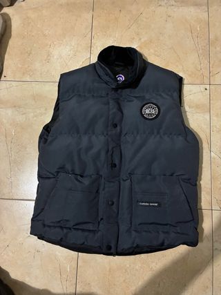 Chaleco acolchado de la marca Canada Goose. - Diseño sin mangas. - Cierre de cremallera y botones. - Bolsillos frontales con solapa. - Logo circular en el pecho.