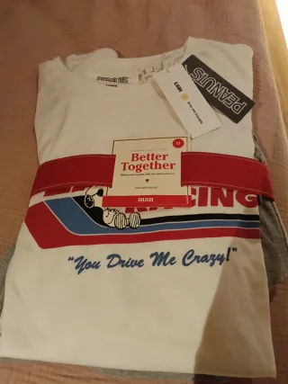 Conjunto de pijama de hombre de la marca Woman Secret. Nuevo a estrenar con etiqueta, ideal para regalo! Camiseta de manga larga blanca con estampado y pantalón largo gris. En tienda 22€ 8€