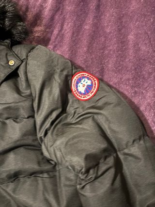 Chaqueta acolchada de la marca Canada Goose en color negro. Cuenta con un diseño moderno y detalles distintivos. - Capucha con ribete de pelo sintético. - Cierre frontal con cremallera y botones. - Bolsillos laterales con cremallera. - Insignia de la marca en la manga.