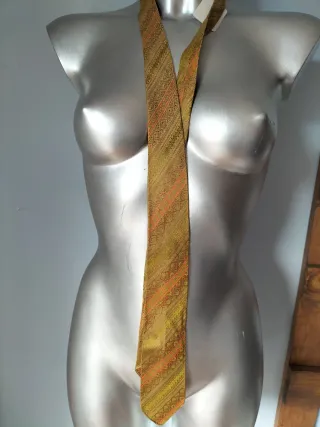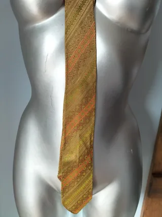 Corbata verde y naranja con estampado
