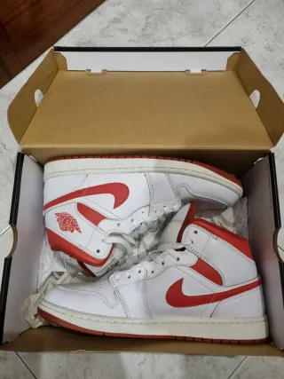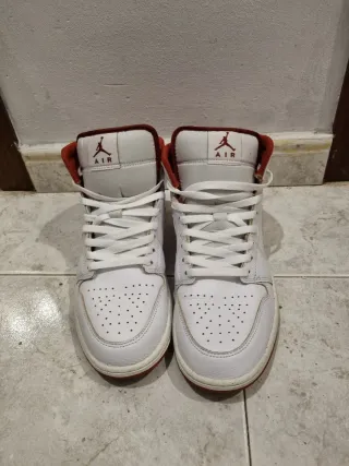 Zapatillas deportivas Nike Air Jordan 1 Mid SE, sin usar ya que llevo plantillas y no le va bien a este modelo - Diseño icónico en blanco y rojo. - Talla 44.5.