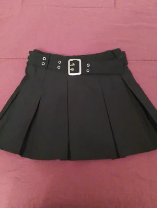 Falda negra plisada con cinturón