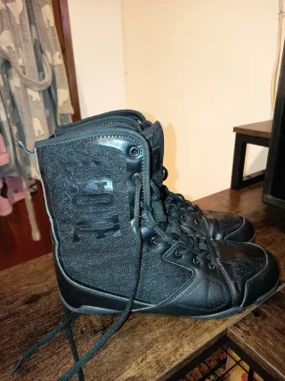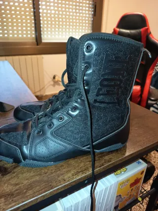 Botas de boxeo de la marca Leone en color negro. Diseñadas para ofrecer soporte y comodidad. - Cierre con cordones. - Diseño de caña alta. - Materiales resistentes.