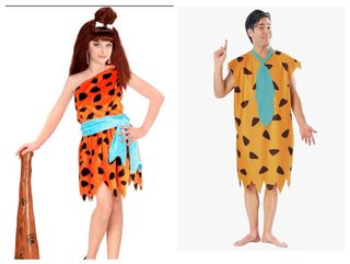 Conjunto de dos disfraces inspirados en Los Picapiedra. - Disfraz de Wilma. - Disfraz de Pedro Picapiedra.