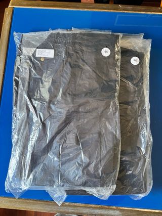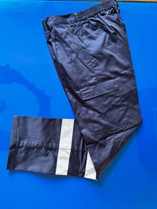 Pantalones de trabajo nuevos con detalles reflectantes. 2 pantalones de verano y 3 de invierno. Todos son la talla 46. - Diseño con bolsillos cargo. - Cintura elástica para mayor comodidad. - Rayas reflectantes.