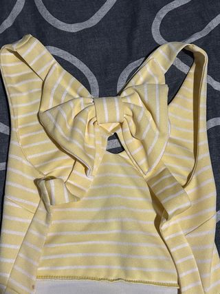 Vestido amarillo con rayas blancas y lazo