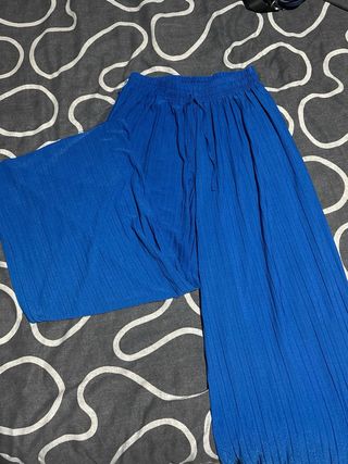 Pantalones blancos de corte ancho con un diseño plisado. - Cintura elástica con cordón. - Tejido ligero y fluido. Los dos pantalones 15€