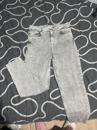Pantalón vaquero de corte recto en color gris claro. Un básico para tu armario. - Cintura alta. - Bolsillos delanteros y traseros. - Cierre de cremallera y botón.