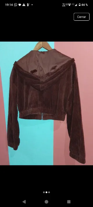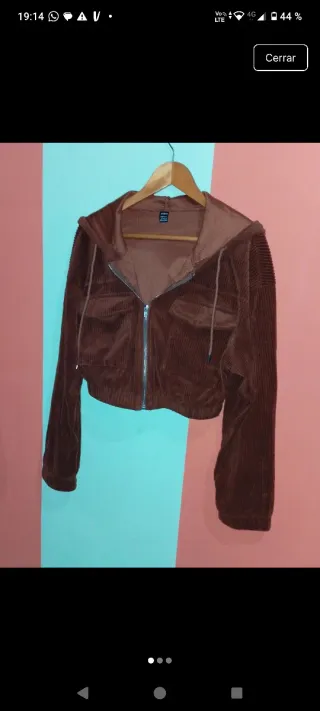 Chaqueta de pana con capucha y cremallera completa. - Diseño corto. - Bolsillos frontales con solapa. - Cordones ajustables en la capucha.