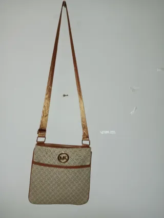 Bolso de mano Michael Kors con un diseño elegante. - Color beige con detalles en dorado. - Correa ajustable para llevar al hombro o cruzado.