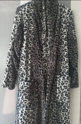 Bata con estampado animal print. Con capucha, pero no tiene cinturón. - Diseño abierto. Calentita en término medio. - Acabado con ribete.Medidas : 84 cm de alto , de ancho de hombros: 54 cm.
