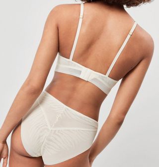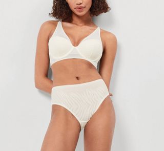 Sujetador bralette (Copa B) con aro y foam en tejido de encaje extra plano con estructura de animal print. Tirantes ajustables y cierre trasero de cuatro posiciones. Marca Gisela | Colores: Marfil | Tallas: 90, 95 y 100 | Ref.: 2/10005.