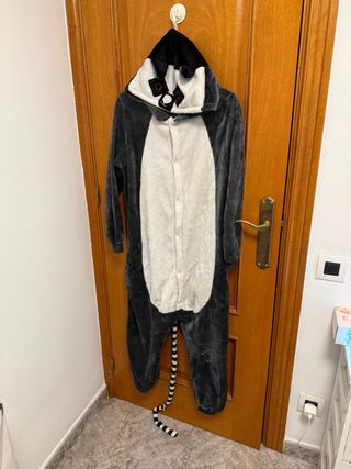 Pijama entero con diseño de lemur, ideal para estar cómodo en casa. Cierre de cremallera y botones. - Diseño de lemur. - Cierre frontal con cremallera y botones. - Material suave y confortable.