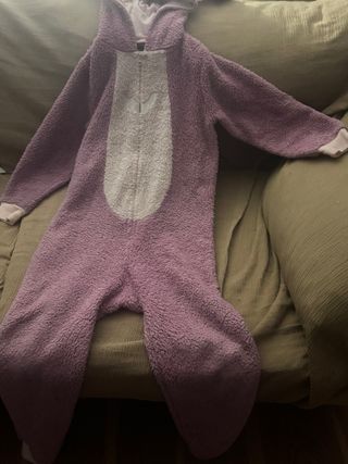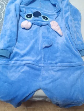 Disfraz de Stitch para llevar como pijama o para fiestas. - Diseño divertido y cómodo. - Detalles de ojos y boca característicos de Stitch. - Orejas y detalles en rosa. Del cuello al tiro mide 80 cm aproximadamente Tiene signo de desgaste en elastico