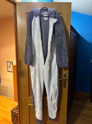 Pijama entero de tacto suave y cálido, ideal para estar cómodo en casa. Presenta un diseño divertido con capucha. - Cierre frontal con cremallera. - Puños elásticos en mangas y tobillos. - Detalle de panel frontal en contraste. Comprada en Disneyland Paris