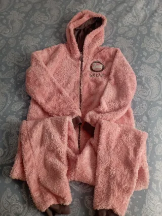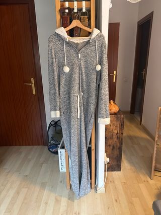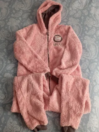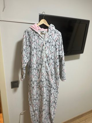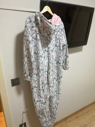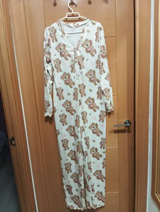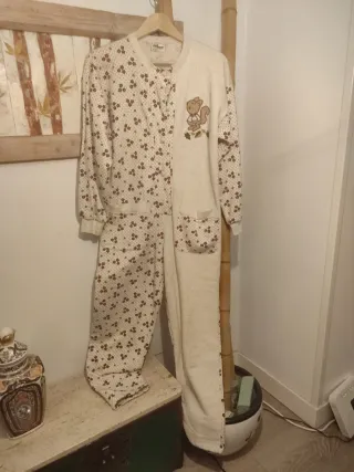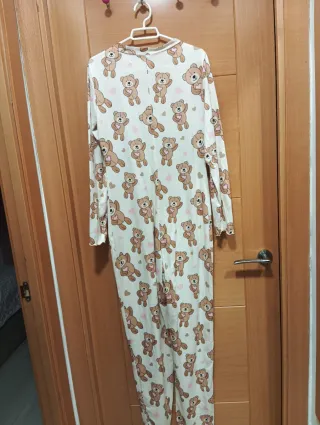 Pijama entero de tejido suave con un bonito estampado. Es gordito. Es una XL pero talla muy pequeño por eso puse talla L