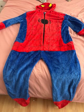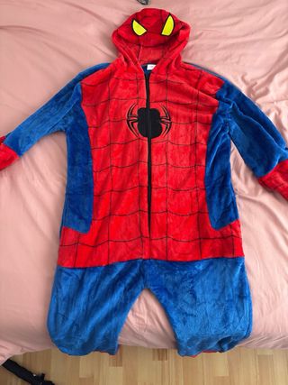 Pijama entero con diseño de Spiderman. - Material suave y cómodo. - Capucha con detalles del personaje. - Cierre frontal con cremallera.