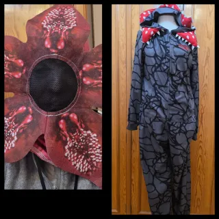 Medidas en fotos confirmar - Pijama de cuerpo entero con estampado de telaraña. - Máscara con diseño de flor de Demogorgon.