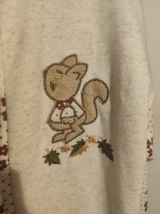 Enterizo de pijama con un diseño divertido y original. - Estampado de flores y topos. - Detalle de ardilla bordada en el pecho. - Cierre de botones. - Dos bolsillos delanteros.