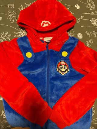 Pijama entero con diseño inspirado en Super Mario. Ideal para el invierno. - Talla M/L. - Capucha con detalles del personaje. - Cierre de cremallera frontal.