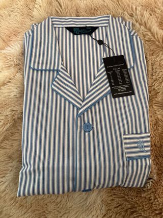 Pijama de hombre con un diseño de cuadros clásico. - Cuello camisero. - Cierre de botones. - Bolsillo en el pecho con logo bordado. -Algodon. Nueva, nunca se uso.
