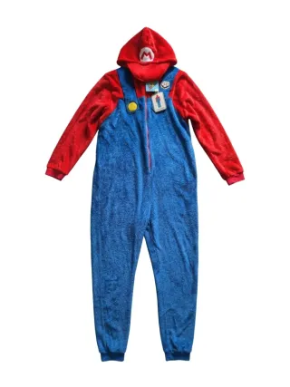 Pijama de invierno con diseño de Mario Bros. - Mono completo con capucha. - Tejido suave y cálido. - Cierre de cremallera frontal.