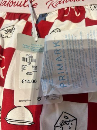 Pantalón de pijama con estampado de Ratatouille. - Diseño a cuadros rojos y blancos. - Personajes y elementos de la película. - Cintura elástica.