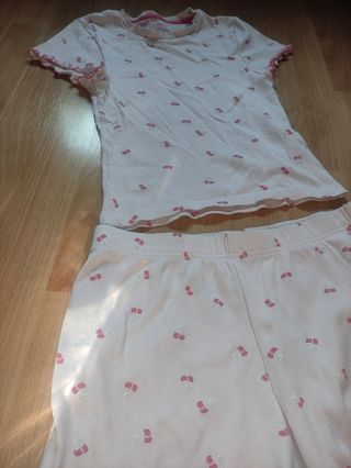 Pijama de color rosa claro con cerezas 🍒 Pantalón y manga corta Cintura con goma El bajo del pantalón y las mangas llevan un acabado diferente Talla Xs o 34