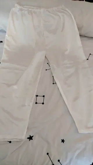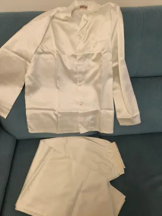 Pijama de popelin para mujer, completamente nuevo. - Tejido de seda suave y ligero. - Diseño elegante en color blanco. - Cierre con botones de estilo oriental. Bordado CM a mano( bolsillo) Fresquito y suave. Artesano. Ideal regalo 🧧 Recoger c Calvet de Bcn Envío x Wallapop
