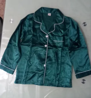 Pijama de seda en color verde, talla 16. - Tacto suave y sedoso. - Diseño clásico con cuello - Cierre de botones. - Bolsillo en el pecho.