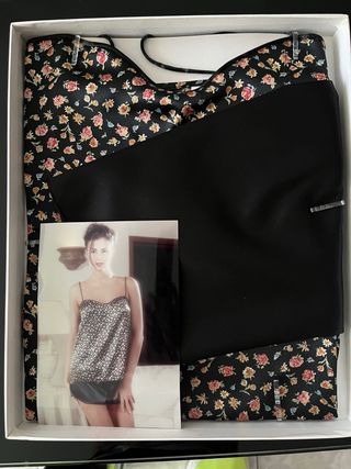 Combinación de Intimissimi con detalles de encaje. Sin estrenar, se vende con etiqueta por error en la talla, fue un regalo y se me pasó la fecha para cambiarlo. - Tejido suave y sedoso. - Diseño delicado con encaje en el escote. - Tirantes ajustables.