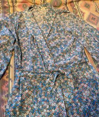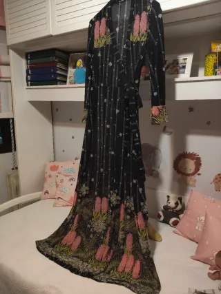 Bata firma Sinfonía, salto de cama en punto de seda de calidad. Talla 36/38 aunque ponga 46 en la etiqueta. Largo hasta el tobillo. Estampado floral. Impecable