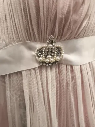 Vestido lencero de la marca Intimissimi, ideal para ocasiones especiales o para sentirse cómoda en casa. - Tejido de seda suave. - Diseño con tirantes finos. - Detalle de cinturón con broche. - Falda con capas de tul.