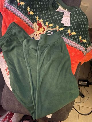 Pijama de invierno suave y muy calentito de la marca Disney para women secret's para mujer, talla XL. -Color azul celeste y blanco con siluetas de la cabeza de mickey - Suave tejido calentito polar - Estampado Mickey Mouse. Medida cintura sin estirar aprox.43 cm Es nuevo sin etiqueta, nunca utilizado