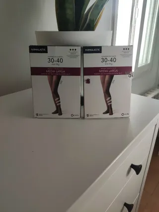 Medias terapéuticas de compresión fuerte, modelo Media Larga. - Nivel de compresión: 30-40 mm Hg. - Banda de silicona. - Talla: G 1 media 6€ las 2 por 10