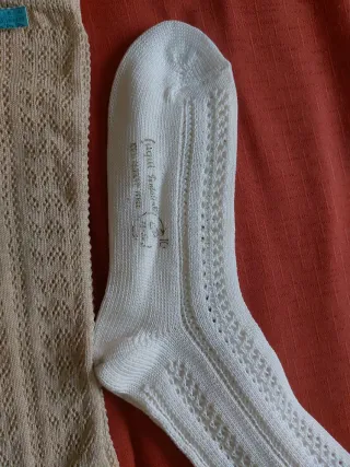 Conjunto de medias de algodón en tonos beige y blanco. Un diseño delicado y versátil. - Tejido calado con patrón de rombos. Largo 32 cm y pie 21cm