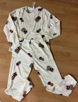 Pijama de tacto suave y calentito para los días de frio. Ideal para estar cómodo en casa. Aún conserva su etiqueta original. - Diseño con un pequeño parche de estrella. - Cintura con cordón ajustable.