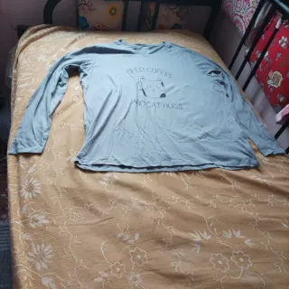 Pijama de manga larga con un divertido estampado. - Estampado de gato con texto Need Coffee And Cat Hugs. - Manga larga.