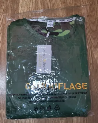 -PRECIO NEGOCIABLE- Pijama de Camuflaje, marca "Sweet Secret". Nuevo, nunca usado, solo se ha abierto para las fotos. 85% Algodón y 15% Poliester.