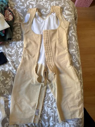 Prenda de compresión para post operatorio. - Diseño de cuerpo entero. - Cremallera lateral. - Encaje en los bajos de las piernas.
