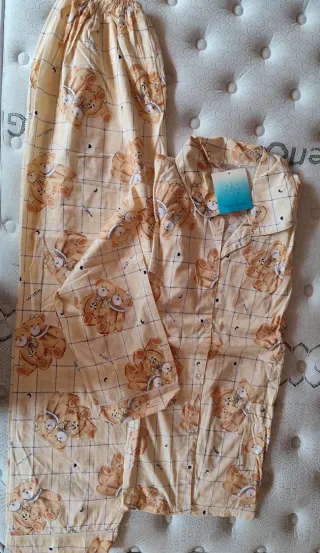 Conjunto de pijama para señora con estampado de osos.chsqueta abierta por delante ,puños ribeteados,da poca talla.algodon 100%. Nuevo sin estrenar. - Diseño de cuadros. - Manga larga. - Pantalón largo.