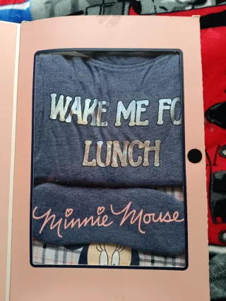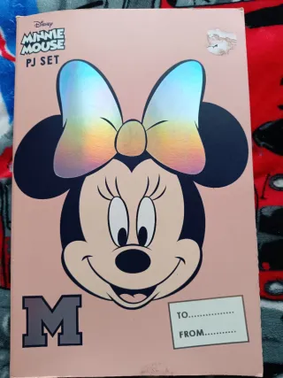 Conjunto de pijama de tres piezas con diseño de Minnie Mouse. - Estampado frontal de Minnie Mouse con lazo holográfico. - Tiene un antifaz para dormir - Incluye etiqueta para escribir PARA y DE.